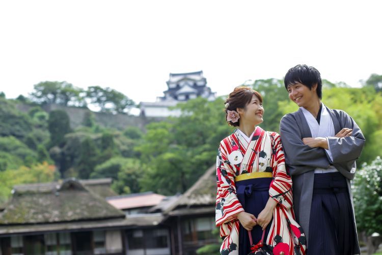 「袴姿で城下町散策!」歴史あるひこねの街を「袴姿」で散策しませんか?石垣やお堀、夢京橋キャッスルロードなど素敵な風景にぴったりです。お着物より着やすく、歩きやすいので、年齢に関係なく楽しんで頂けます。ひこね旅の最高の思い出を作って下さい。